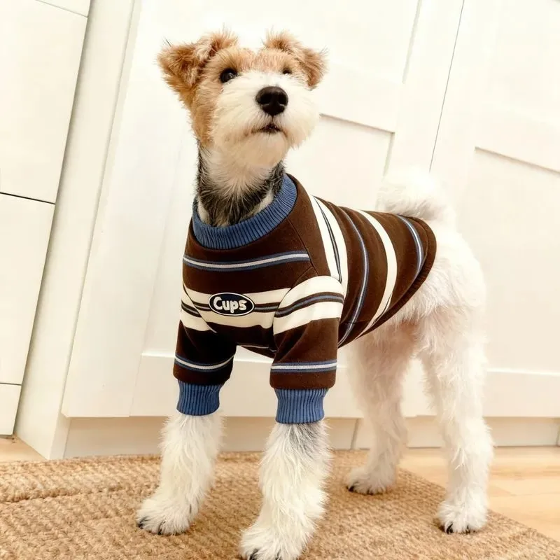 Cat and dog clothing Winter autumn warm striped pullover sweaters Teddy bear poodle and schnauzer pet cute two-legged clothes